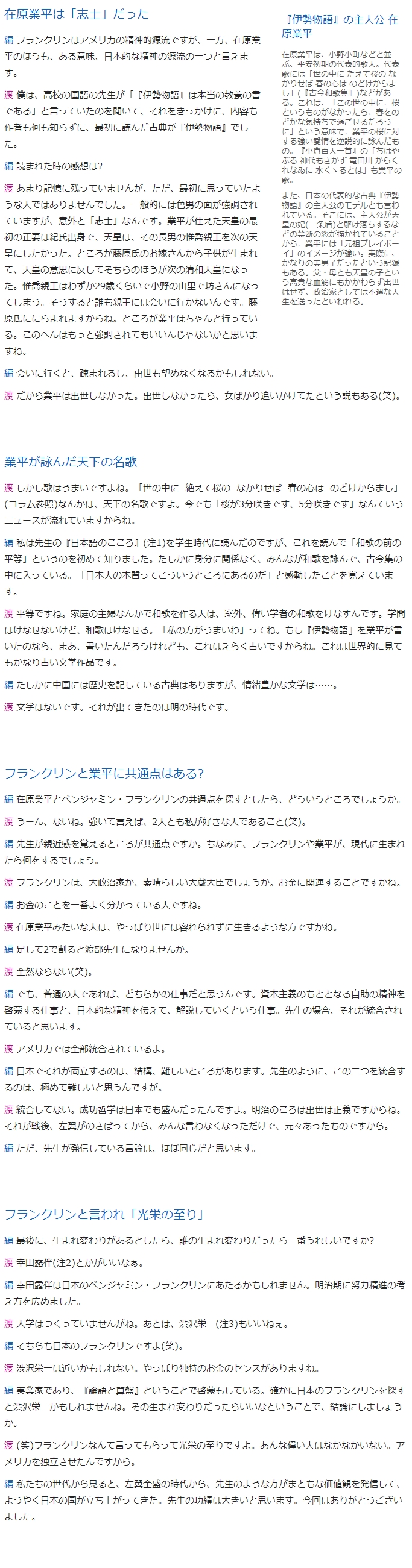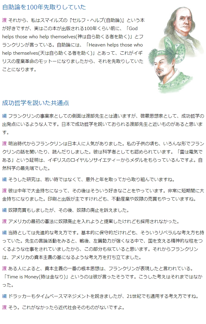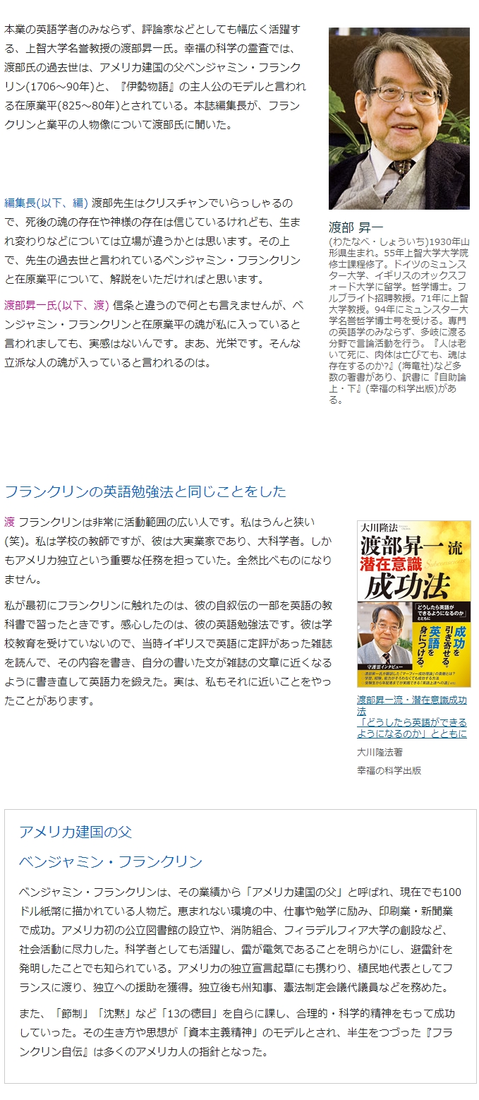 ●渡部昇一氏に聞く - ベンジャミン・フランクリンと在原業平